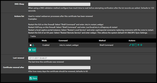 This will restart the Webconfigurator GUI after the certificate has been renewed. Then click Save.