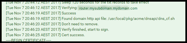 I can’t get to my router externally. The reason I do this is to allow the DNS challenge that the Acme Service will setup to work it’s magic. I’ll break this down how I setup my DNS in the screenshot below.