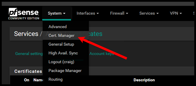 Now if you navigate to System > Cert. Manager