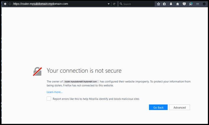 This is what would happen if I try to go to https://my.router.mydomain.com before applying the certificate.