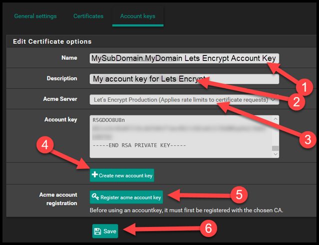 - Then click Register Acme Account Key