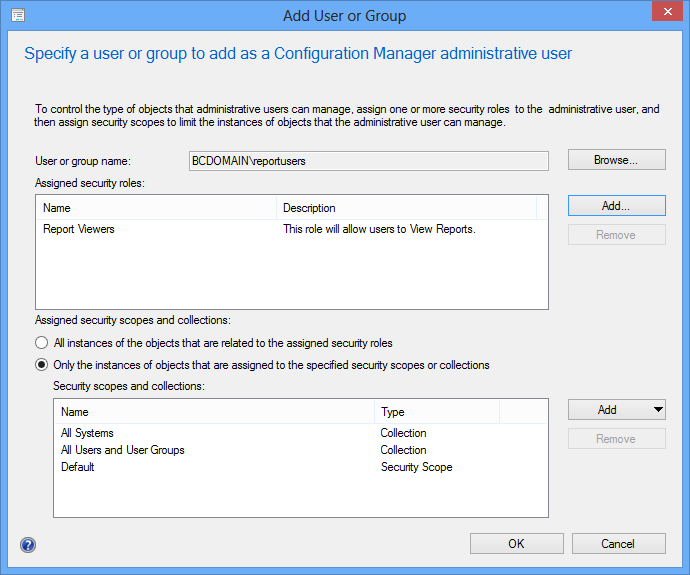 You should see your group listed with the rights ConfigMgr Report Users. Now your users can view reports without breaking anything! Woohoo!