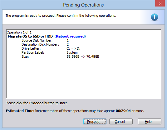 Click Proceed and then the machine will reboot and start cloning the Hard Drive.