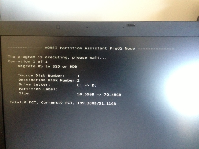 Once it has finished the migration, the machine will reboot again. Now it’s time to get your screwdriver out and swap out the old hard drive and put in the new SSD drive.