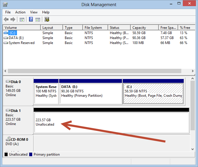 Check Disk Management to make sure that it has shown up.