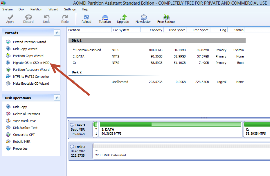 Open up the software and select the Migrate OS to SSD or HDD.
